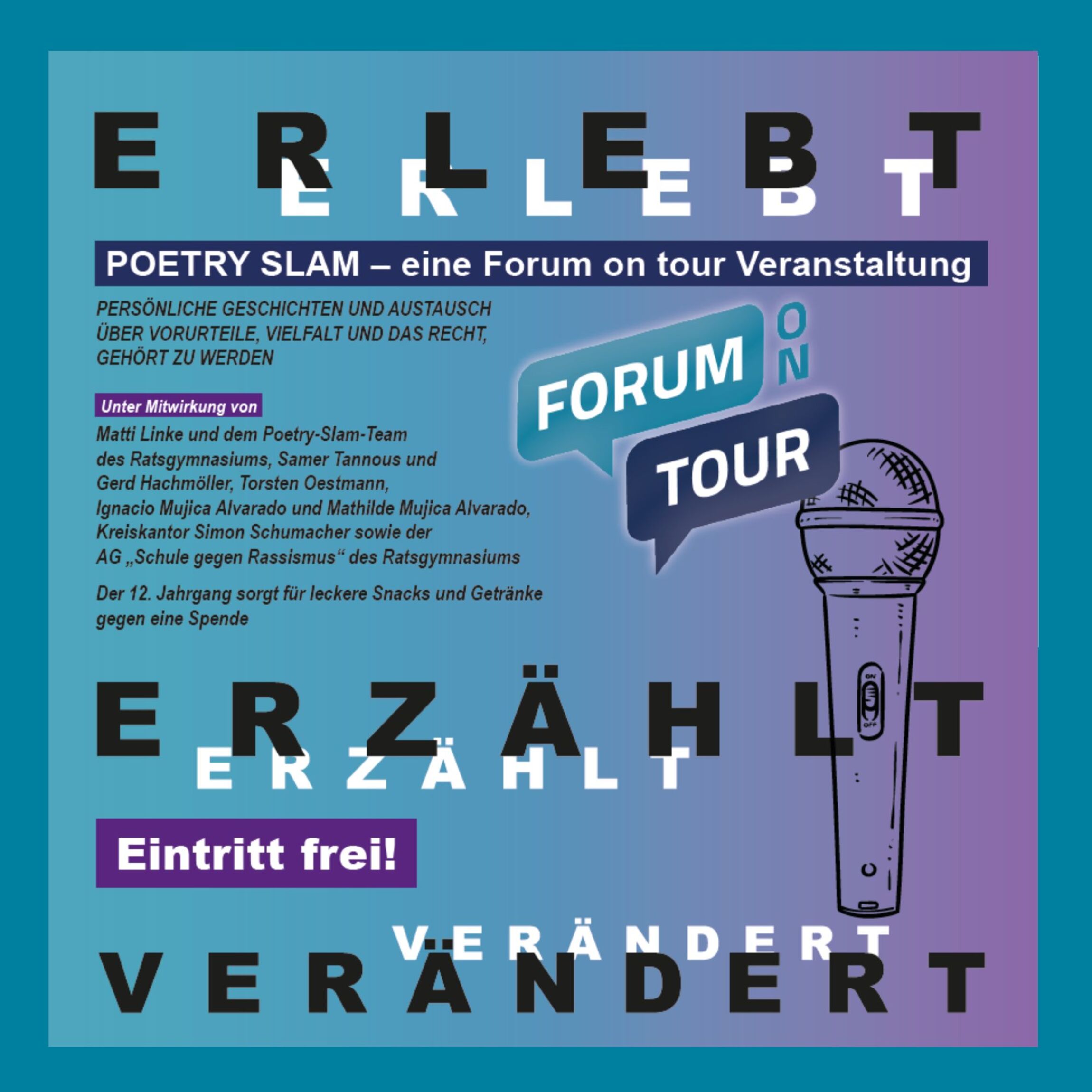 „Erlebt, erzählt, verändert – Poetry Slam, persönliche Geschichten und Austausch über Vorurteile, Vielfalt und das Recht, gehört zu werden“ lautet die Forum on tour Veranstaltung der Jugendlichen aus Rotenburg, welche am 25.03.2025 ab 18 Uhr in der Auferstehungskirche, in Rotenburg, stattfindet.
