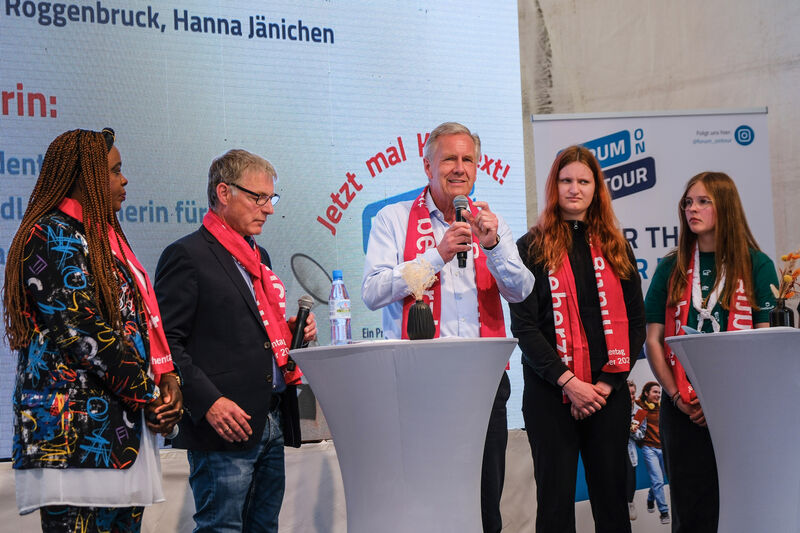 Ergänzt wird die Bühnenveranstaltung durch den Forum on tour Erlebnisraum: Interaktion und Inspiration, welcher zwischen 11.00 und 18.00 Uhr weitere Einblicke in die Forum on tour Projekte ermöglicht und zum Austausch in den Ausstellungscontainer hinter der Bühne am Platz der Weltausstellung einlädt. Um 16.30 Uhr wird die niedersächsische Landtagspräsidentin Hanna Naber zu Gast sein, um mit Jugendlichen über ihre gesellschaftspolitischen Anliegen zu sprechen.